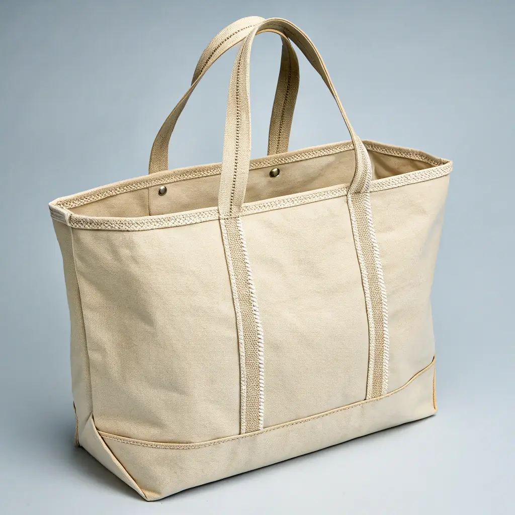 This spacious canvas tote bag offers a casual yet stylish look, ideal for everyday errands or beach days. It features sturdy handles and a large main compartment to hold all your essentials. The bag is made from durable canvas material with reinforced stitching for added strength. Its versatile design complements various casual outfits.